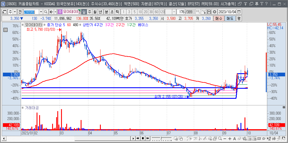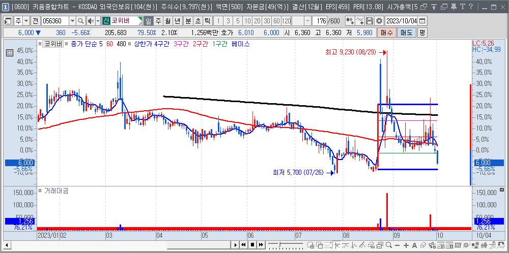 | 2023-08-23 | 056360 | 코위버 | 5,830 | 1/4 | 애플카,양자 암호 |