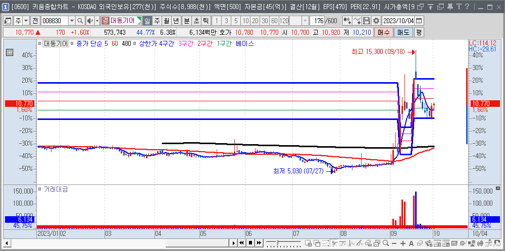 | 2023-08-30 | 013570 | 디와이 | 6,060 | 1/4 | 자율 주행 #1,로봇 #2,수소 (전지) #2 |
