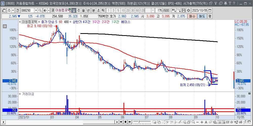 | 2023-09-22 | 088290 | 이원컴포텍 | 2,940 | 3/4 | 자동차 부품 #1 |