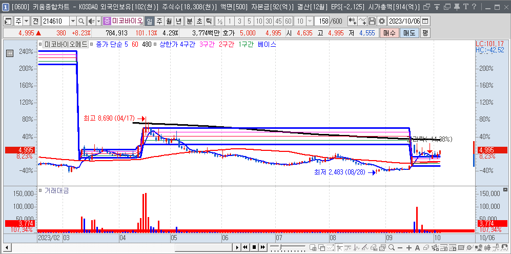 | 2023-09-15 | 214610 | 미코바이오메드 | 4,761 | 4/4 | 엠폭스,제약 & 바이오 #4,진단 키트 |