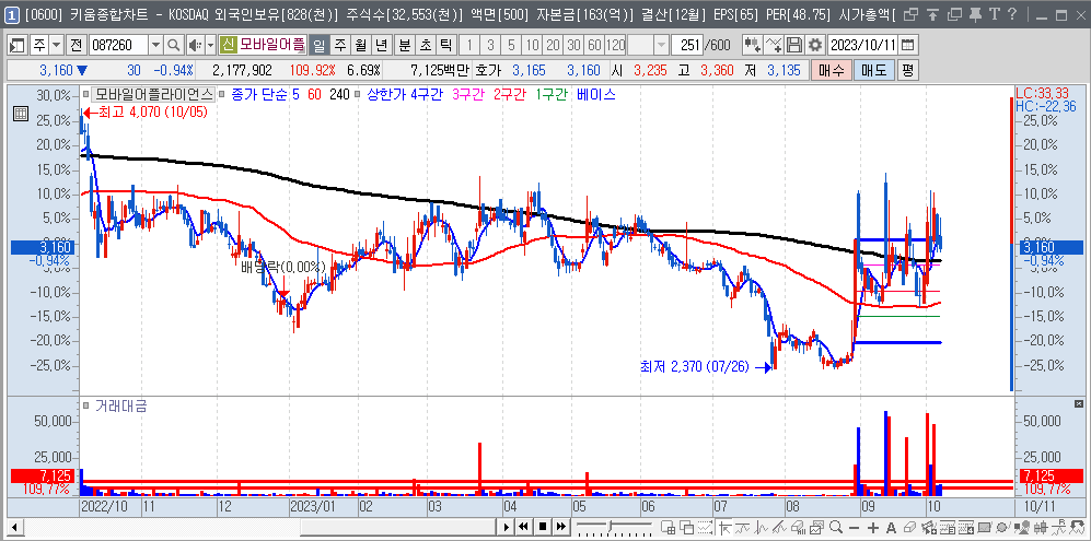 | 2023-08-23 | 056360 | 코위버 | 6,760 | 3/4 | 애플카,양자 암호 |
