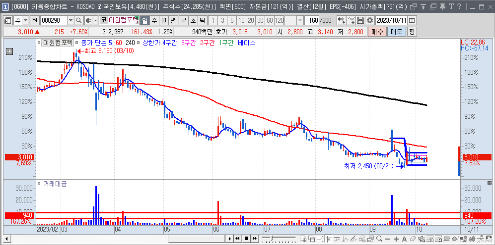 | 2023-09-22 | 088290 | 이원컴포텍 | 2,940 | 3/4 | 자동차 부품 #1 |