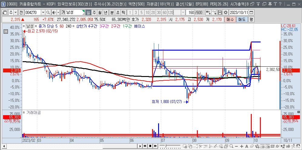 위의 링크 글은 키움증권에서 상한가를 4 등분하여 가로선을 만드는 방법에 대해 설명한 글이니 독자님들의 차트에 반영하여 활용하시면 차트 분석에 많은 도움이 될 것으로 판단하고 있습니다.