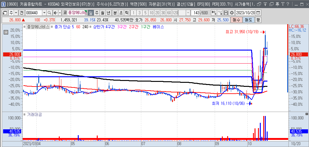 | 2023-10-18 | 000440 | 중앙에너비스 | 26,438 | 4/4 | 석유 화학 (국제 유가) |